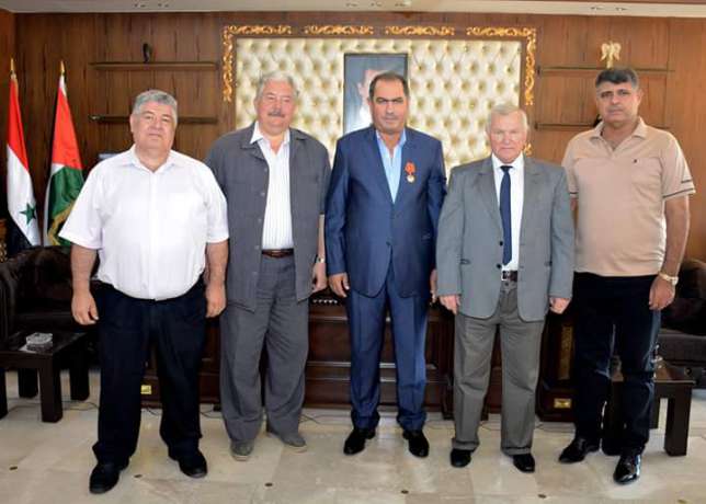 ثم قلّد الأصدقاء الروس الرفيق القادري وسام بمناسبة احتفال روسيا بمرور مئة عام على الثورة الاشتراكية.