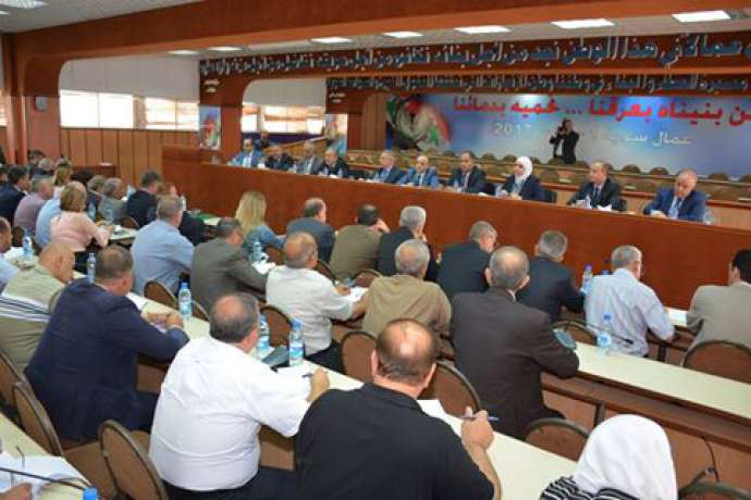 الرفيق جمال القادري رئيس الاتحاد العام لنقابات العمال يفتتح الجلسة الأولى لليوم الثاني من المجلس العام للاتحاد العام لنقابات العمال بحضور المهندس عماد خميس رئيس مجلس الوزراء و كل من الوزراء: